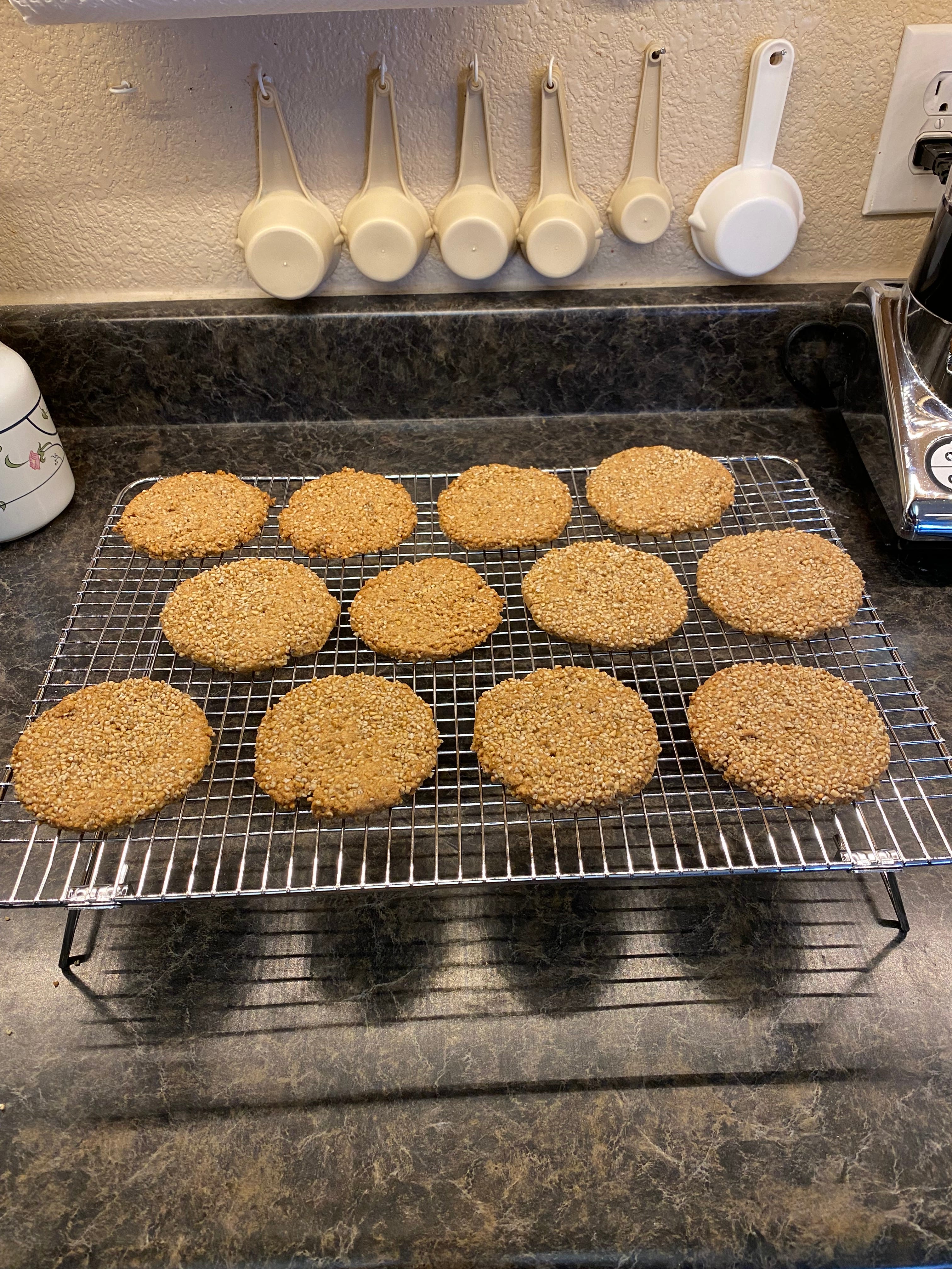 7b. Re-roll scraps and cut out more circles, till dough is gone. Dust with oats as needed. (Depending how thick you rolled the dough, you should get 12-15 circles.)